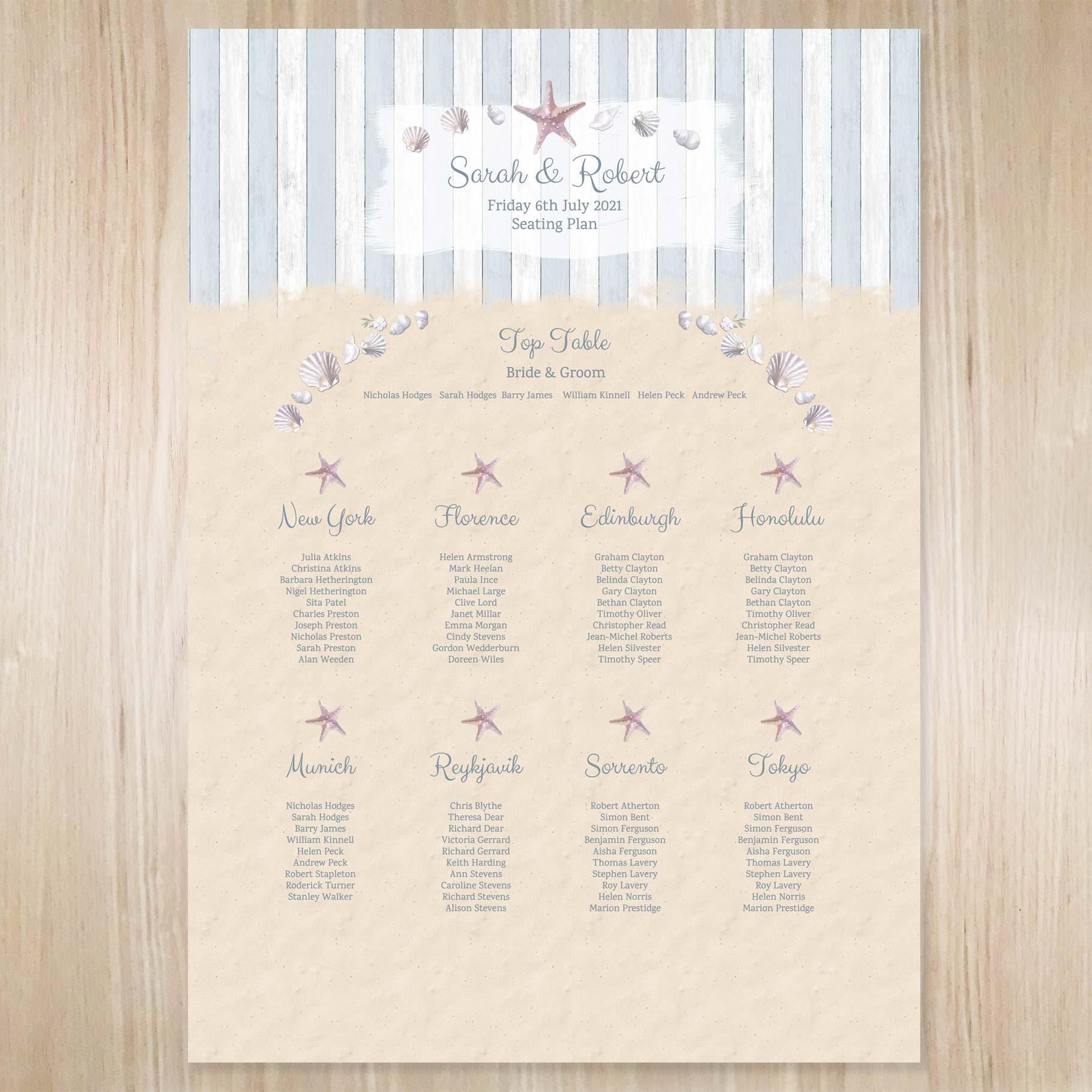 Invite your guests to their seats for your wedding breakfast with a beautiful, eye-catching table plan. All you need to do is send us the names or numbers of each table, with a list of who will be sitting at each one. You can choose whether to print your table plan onto a poster or onto a Foamex board.